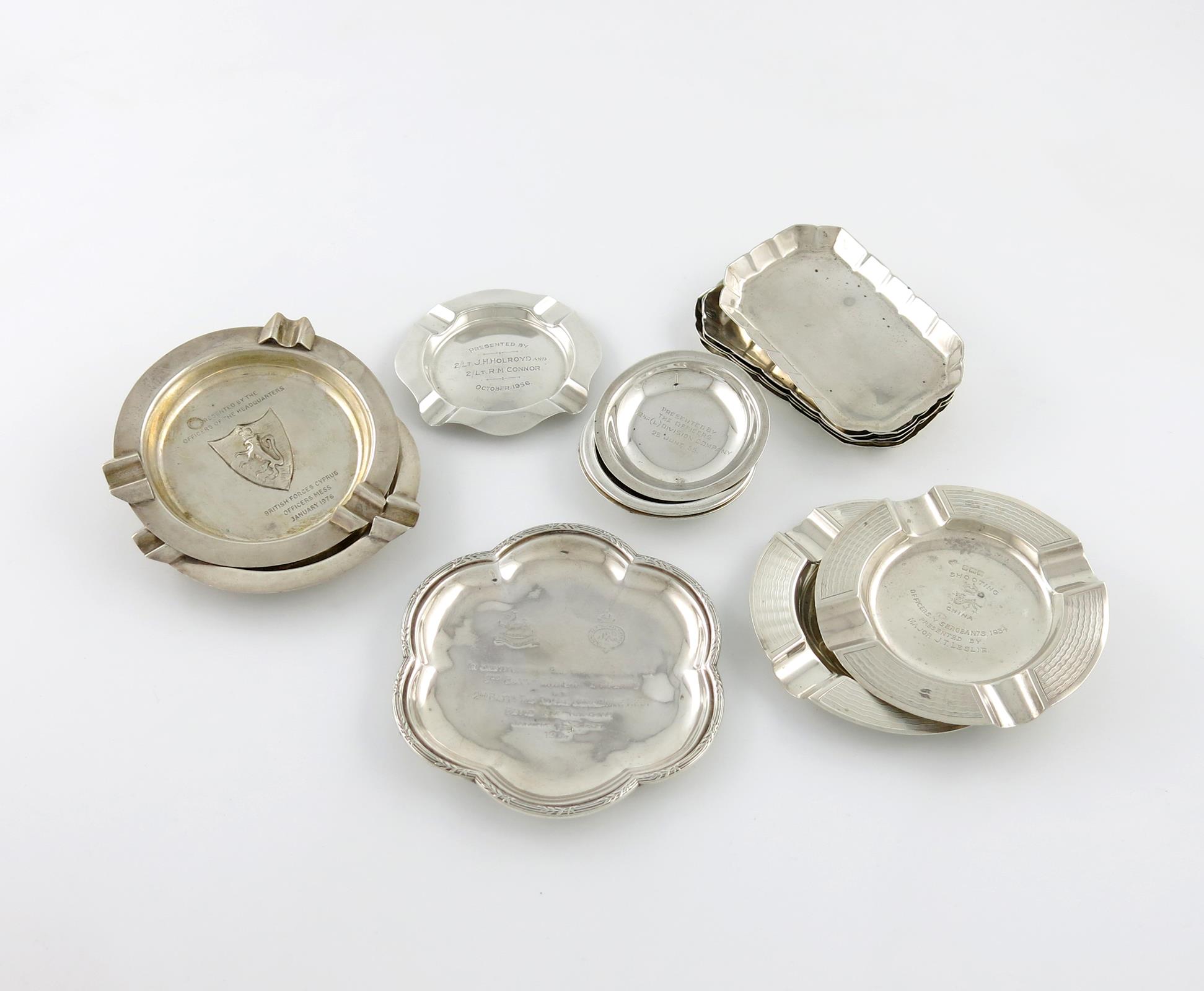 A mixed lot of regimental silver ashtrays,