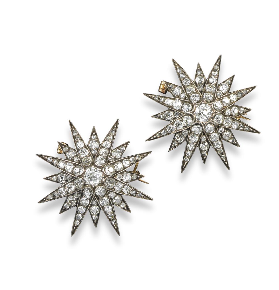 Two matching Victorian diamond star brooches