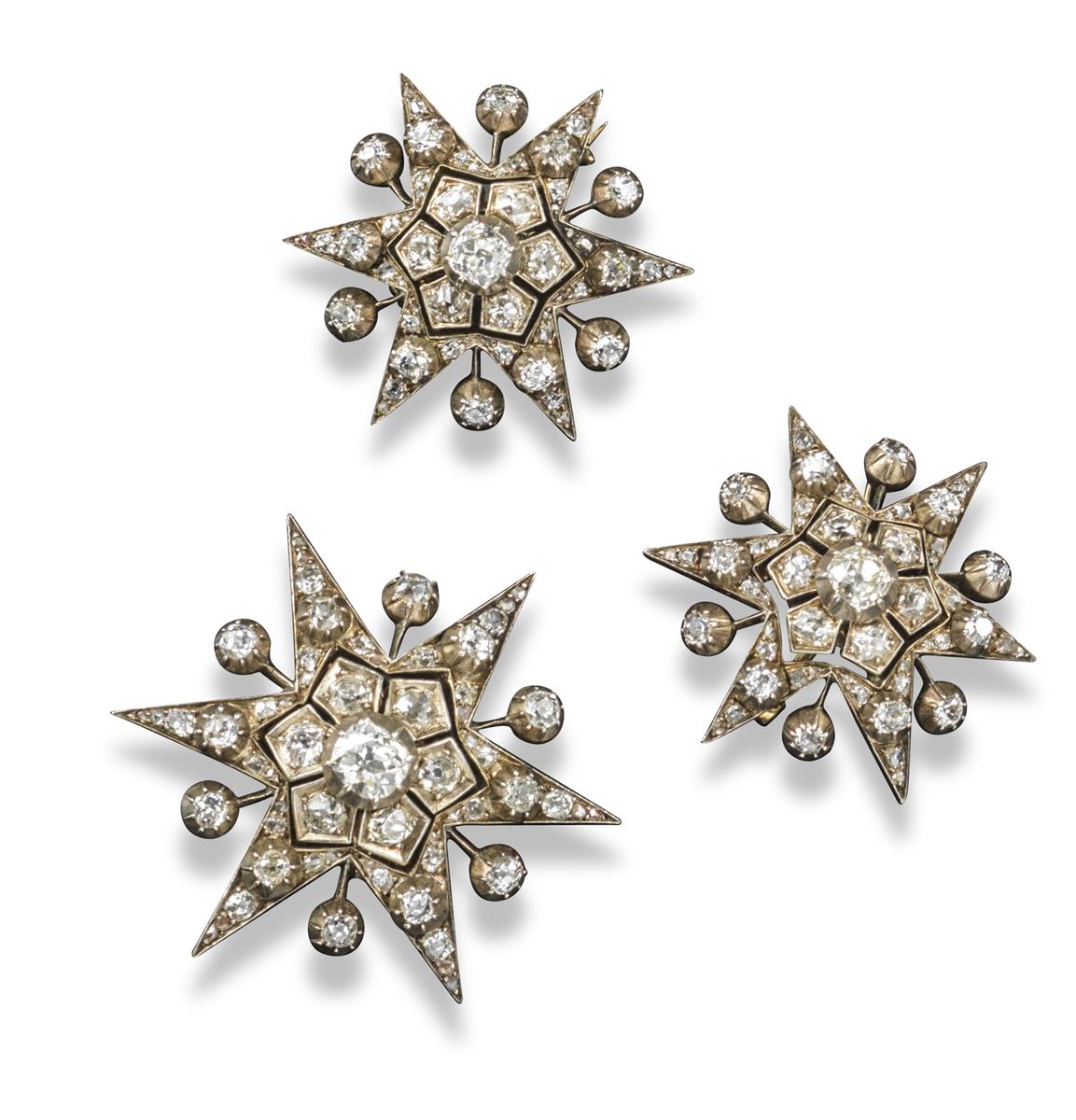 A set of three Victorian diamond star brooches