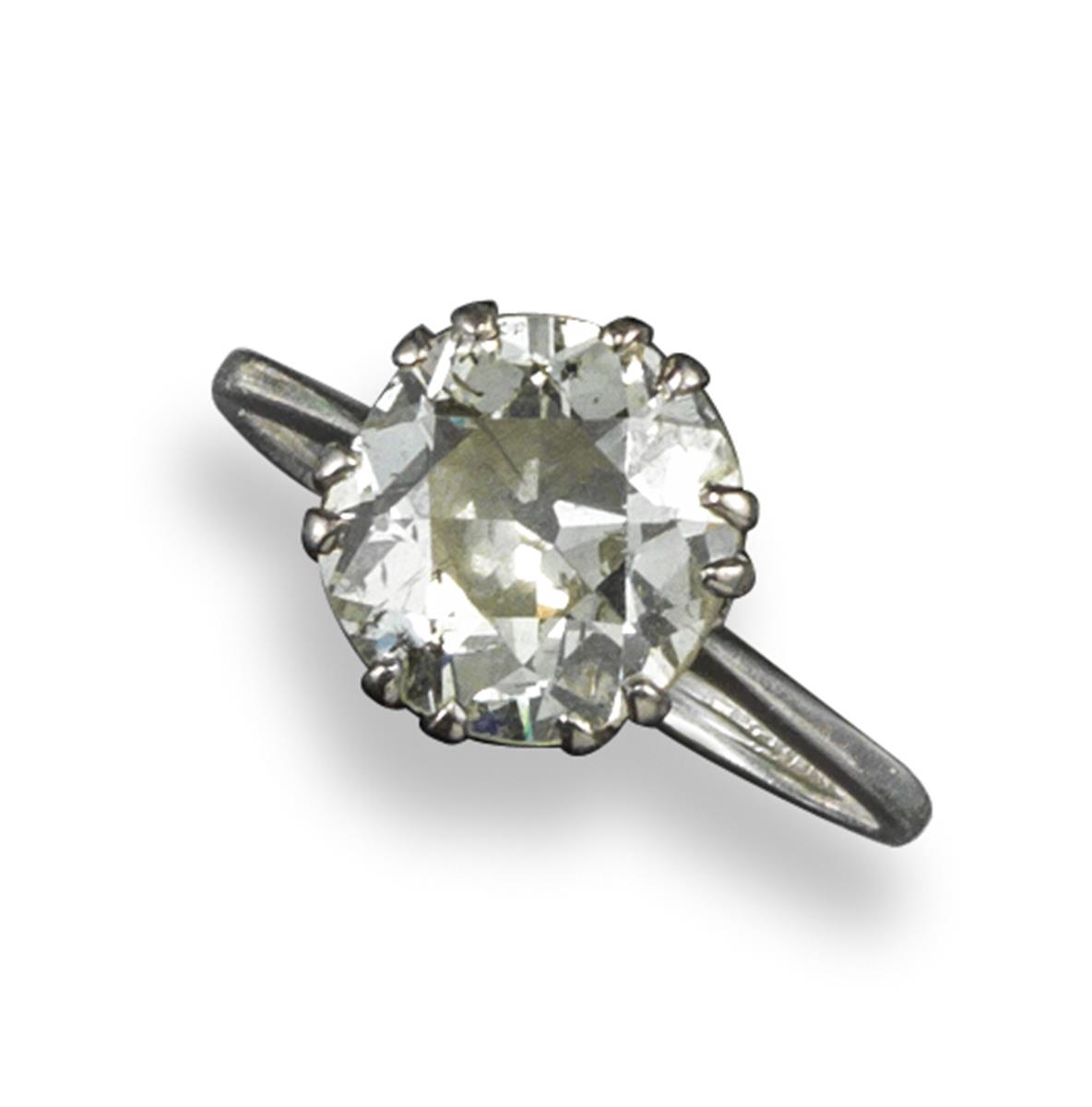 A diamond solitaire ring, the old circular-cut diamond weighs approximately 2.92cts and is set in platinum. Size N1/2.