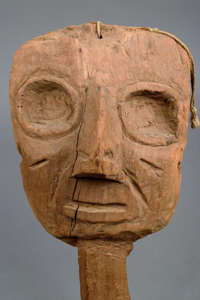 wood with hollow eyes and hooked nose, with a pointed stem,