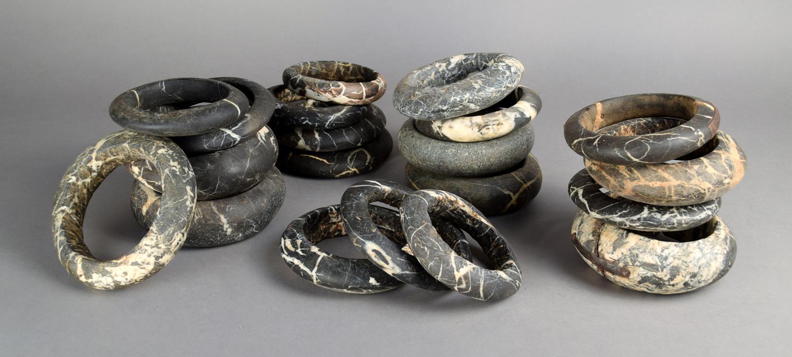 Twenty Mali/Burkina Faso bangles black and white veined stone