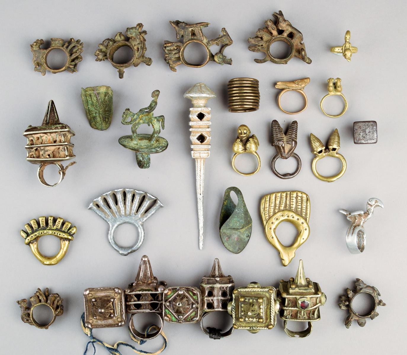 with a collection of metal rings, Ashanti, Dogon, Ethiopia and an aluminium hair pin. (29)
