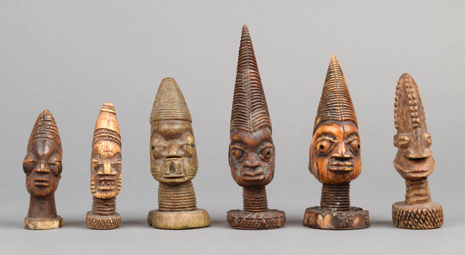 ivory, bone and horn, with conical headdresses, two with filed teeth,