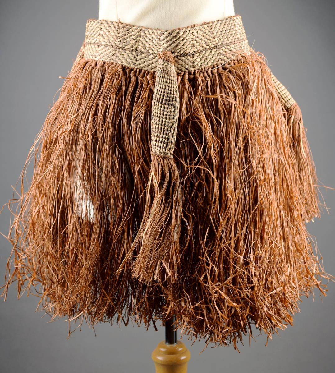 An Asmat apron Papua New Guinea fibre with a woven belt with three appendages and tasseled fringe
