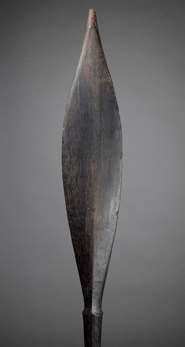 palmwood with a leaf shape blade with a swollen tip, the handle terminal reduced,