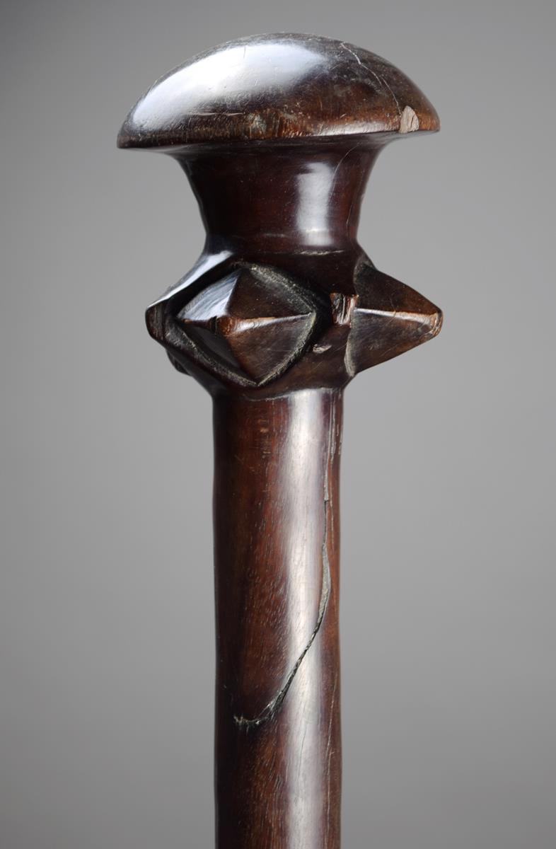 A Vanuatu club Melanesia wood with an oval domed finial above a toothed flange