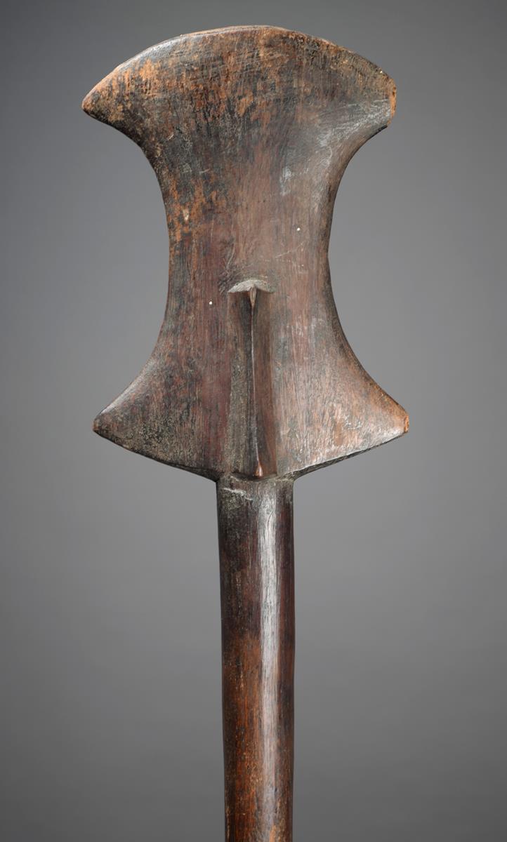 A Vanuatu club Melanesia wood with a concave sided blade top with smaller conforming lugs on a...