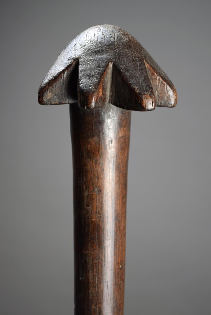 A Vanuatu club Melanesia wood with a domed star finial and a tapering shaft with the remains of a...
