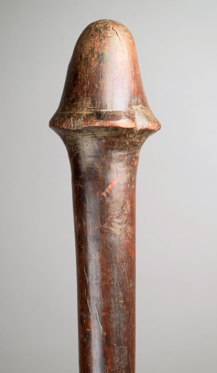 wood with a phallic terminal and a cylindrical grip,