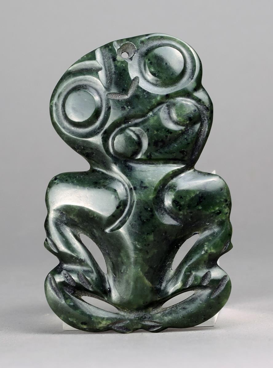 A Maori hei-tiki pendant New Zealand nephrite with a pierced suspension hole to the top