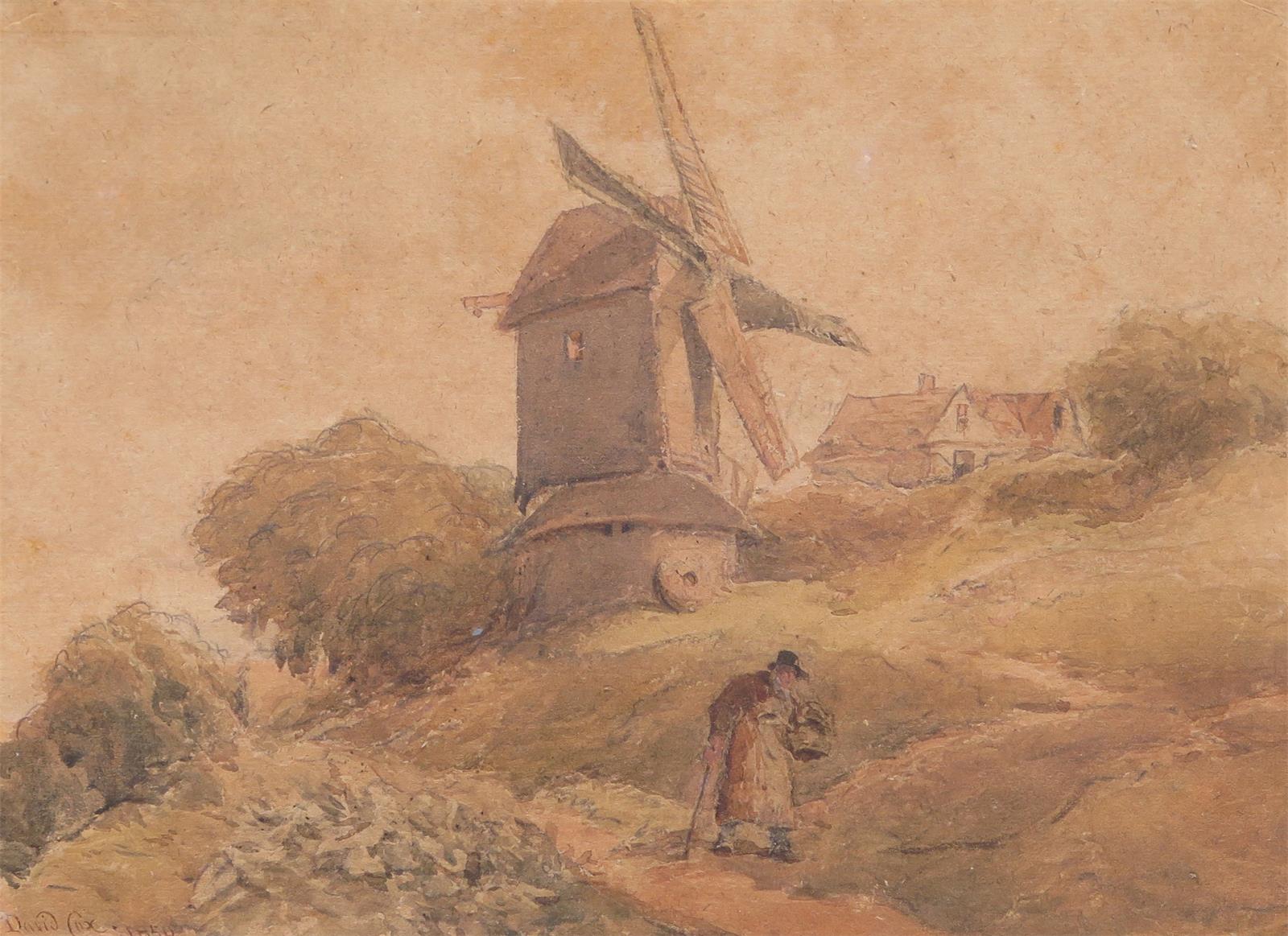 David Cox Snr. O.W.S. (1783-1859) Figure on a path by a windmill Signed and dated 1850...
