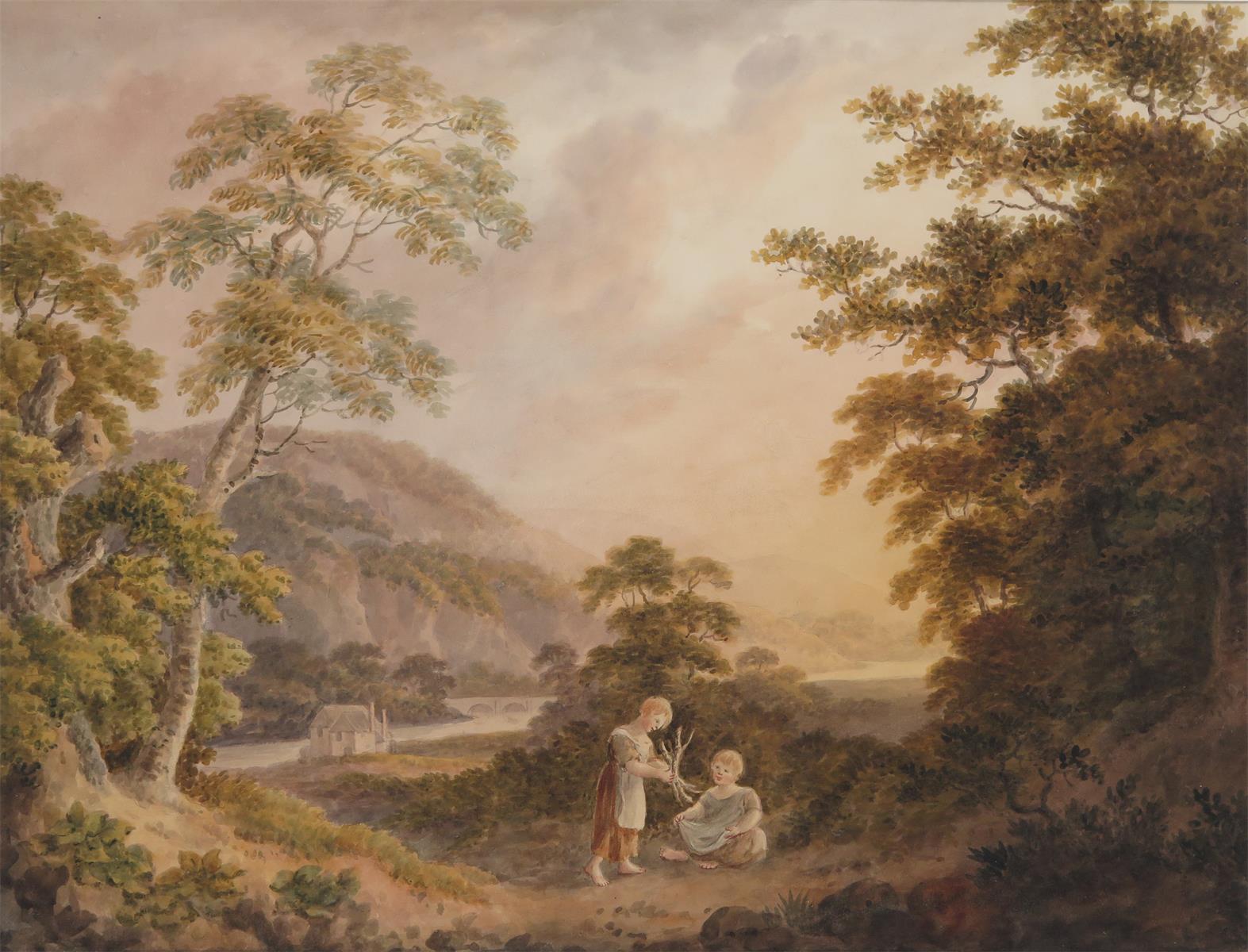 Joshua Cristall (1767-1847) Children gathering firewood in a landscape Watercolour 33.5 x 44.5cm;...