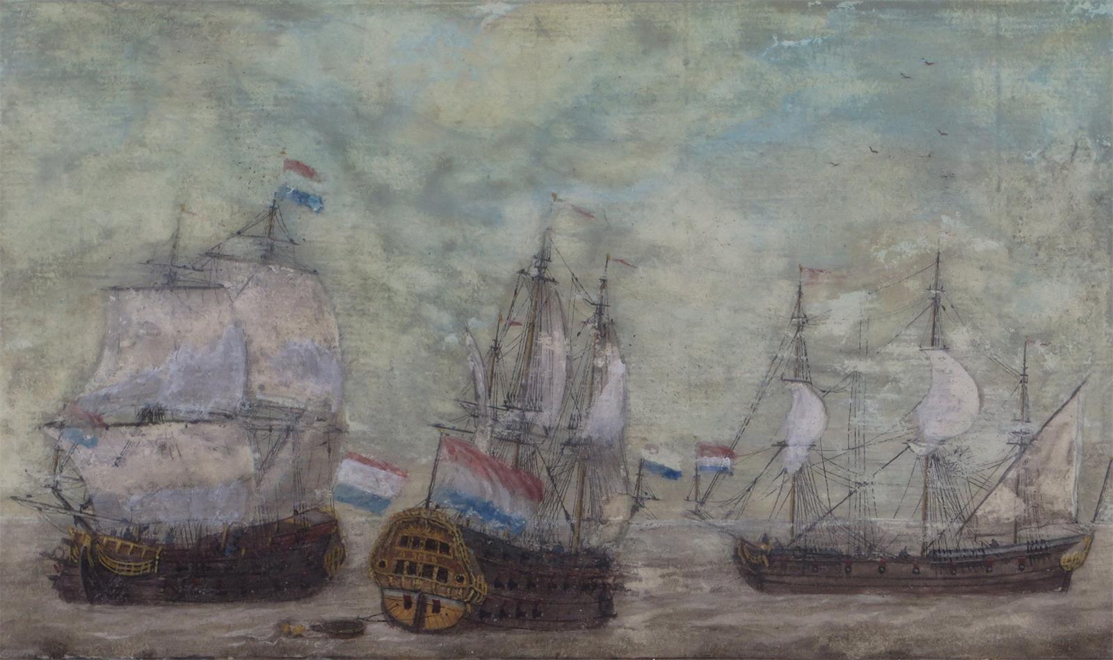 Dutch School 17th Century Warships at sea Pencil and watercolour heightened with white 12.25 x...
