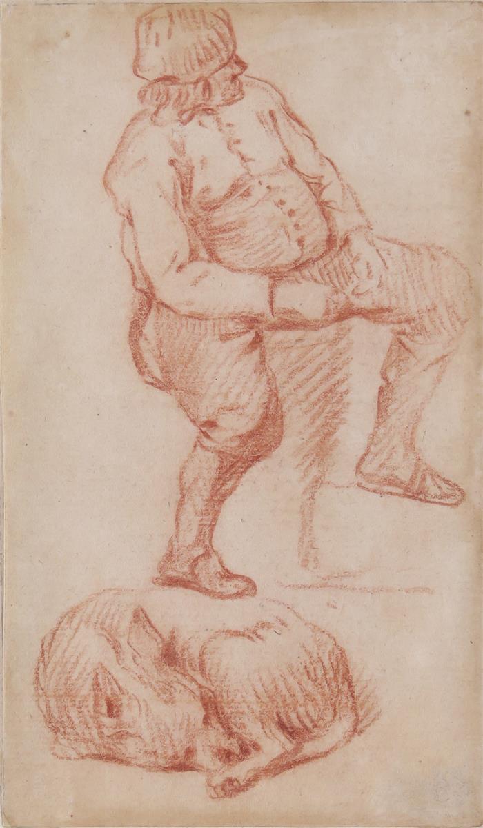 Dutch School 18th Century Study of a man and a sleeping dog Sanguine on paper 15.5 x 9cm; 6 x 3½in