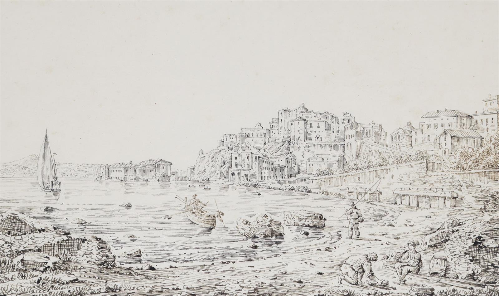 Antonio Senape (Italian 1788-1850) Veduta di Pozzuoli Titled verso Pen and ink 16.25 x 27cm; 6½ x...