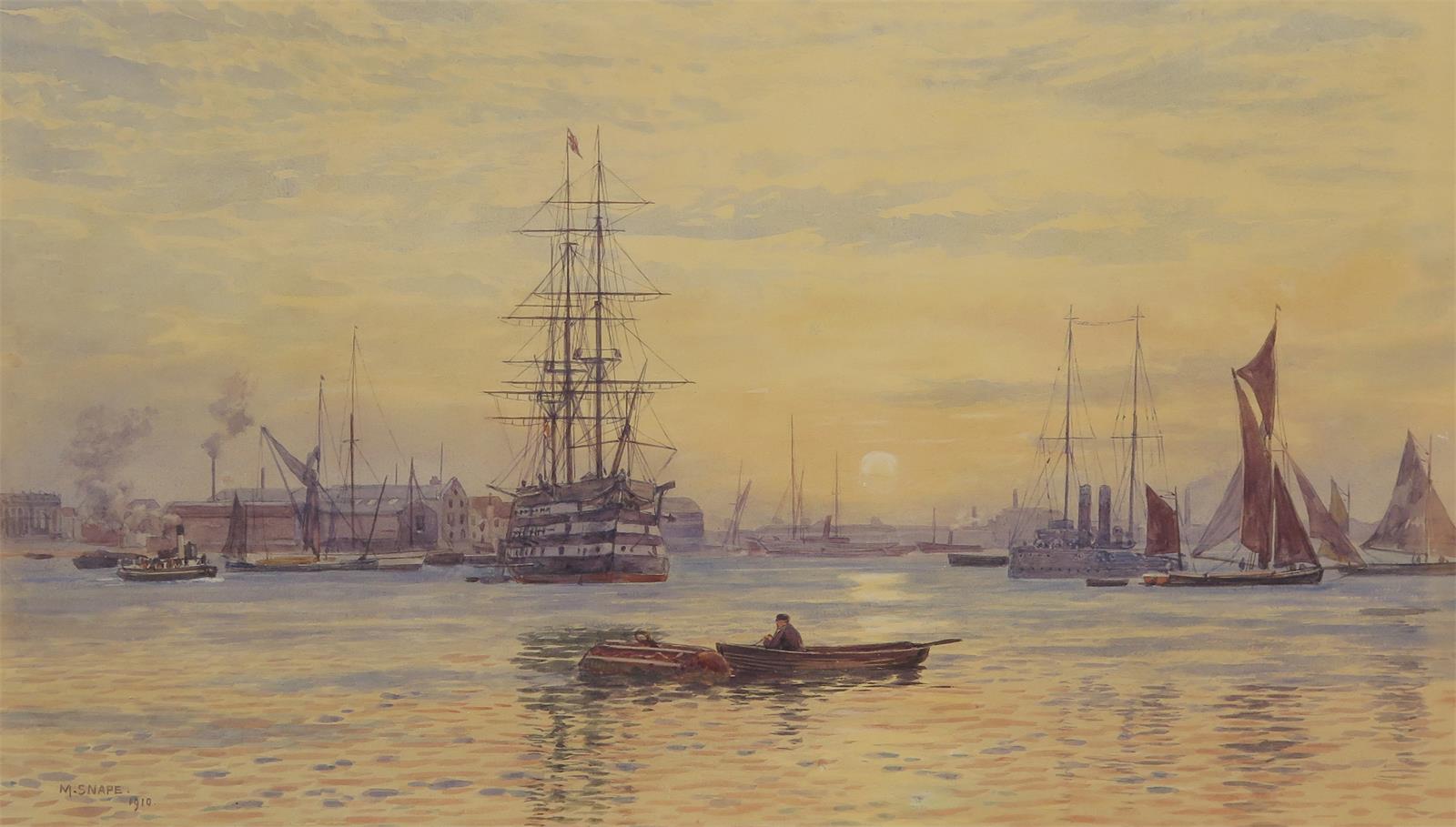 Martin Snape (1852-1930) Gosport from Portsmouth Harbour Signed and dated 1910 Watercolour 27 x...