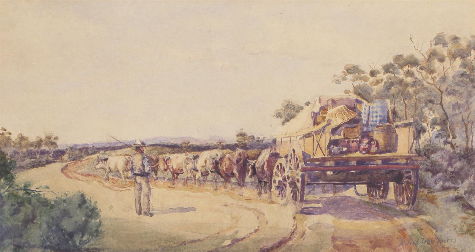 Godfrey Rivers (Australian 1859-1925) A wagon train; Italian scene Two