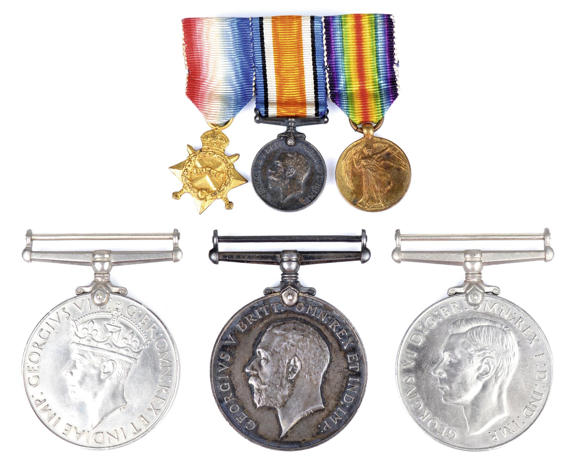 A British War Medal 1914-20, (CH. M. A. A. E. KNIGHT. R. N.); a mounted miniature 1914-15 Star Trio; and 1939-45 War Medal and Defence Medal, in ATS box of issue addressed to a female recipient. Nearly extremely fine.