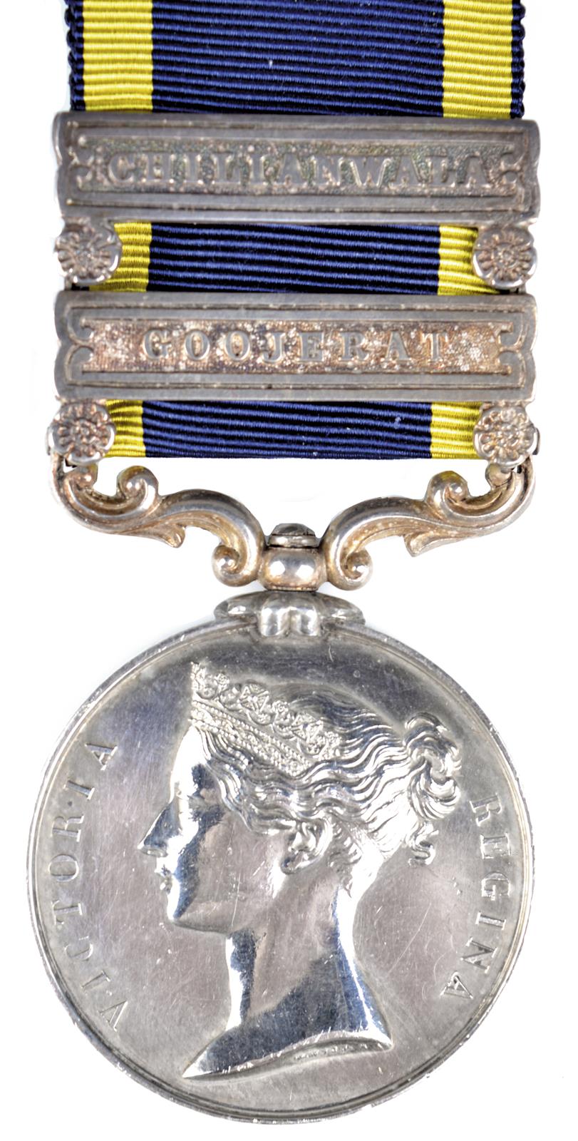 A Punjab Medal to Gunner T. Eadon, Bengal Foot Artillery, 2 clasps: Chilianwala, Goojerat (GUNNER T. EADON, 3RD CY 1ST BATTN ARTY), impressed. Nearly extremely fine.