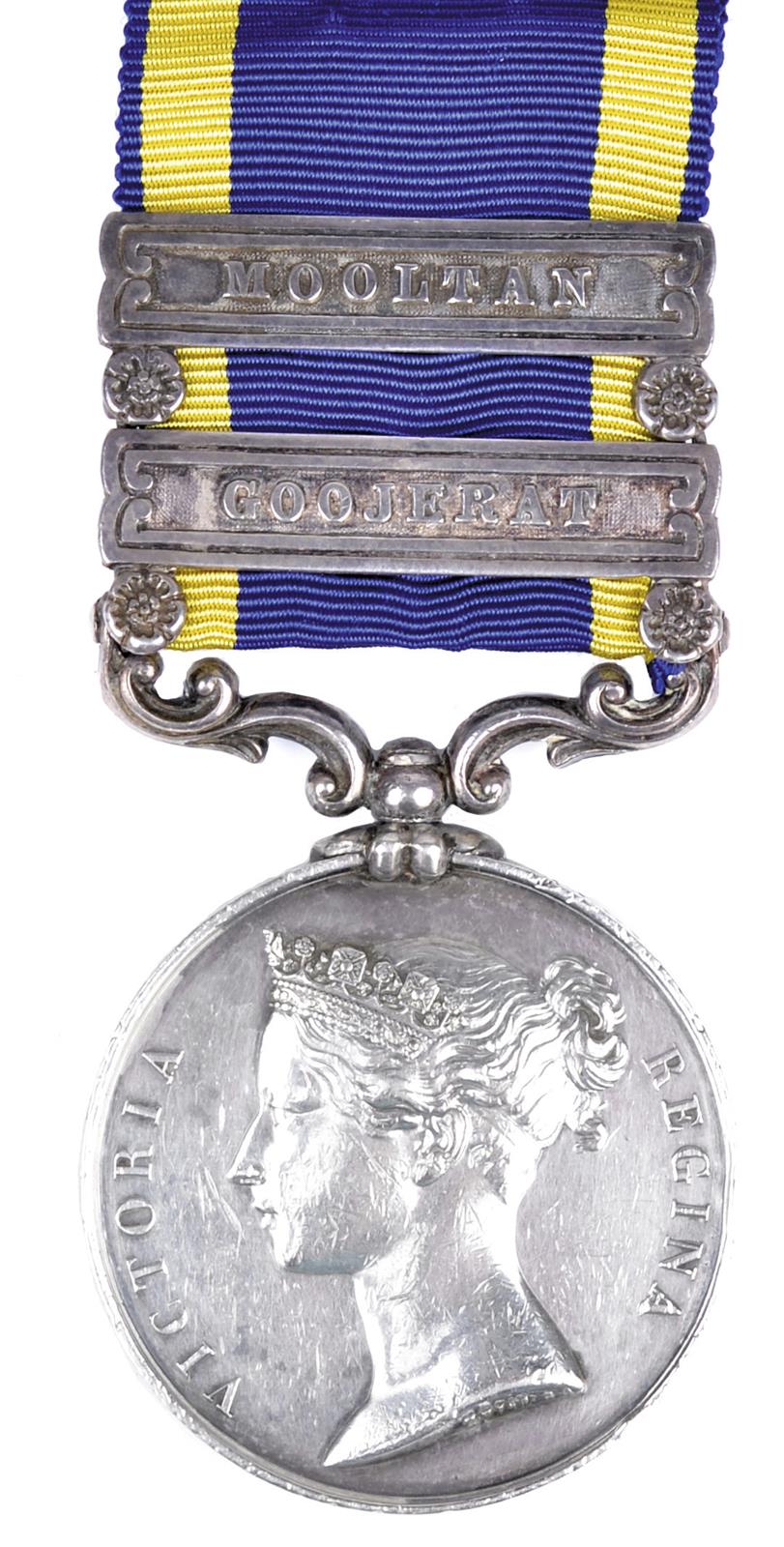 A Punjab Medal to Gunner Henderson Brannon, Bombay Horse Artillery, 2 clasps: Mooltan and Goojerat (GUNNER HENDERSON BRANNON, 3RD TROOP BDE H. ARTY), impressed. Good very fine