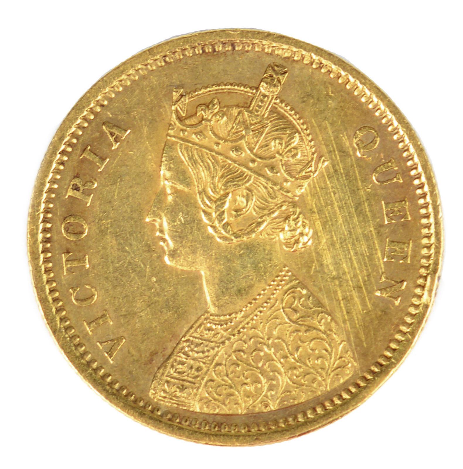 British India, Victoria (Queen), gold mohur, 1862 (F 1598, KM 480), some scratching, otherwise very fine or better.