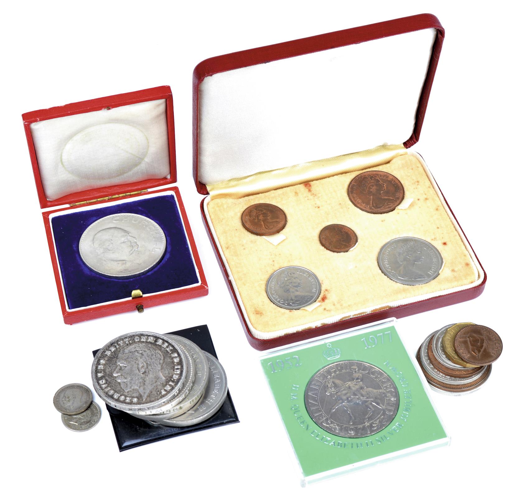 Specimen set, 1971, five coins, Ten Pence to Half-Penny, good very fine, in Royal Mint case; together with a small collection of commemorative crowns and pre-decimal coinage.