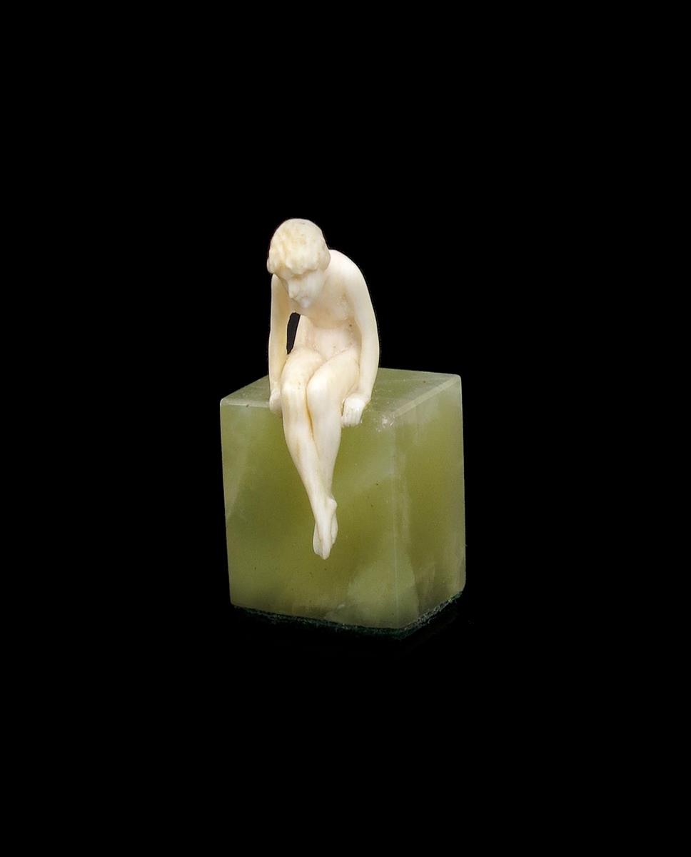 λ Woman Contemplating a miniature carved ivory figure by Ferdinand Preiss