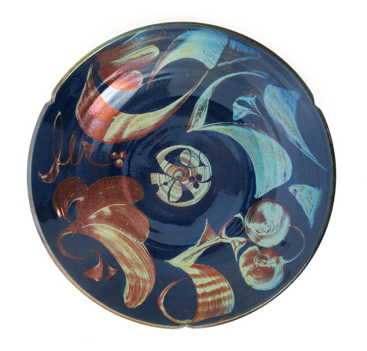 Alan Caiger-Smith MBE (born 1930) an Aldermaston Pottery plate with fluted rim