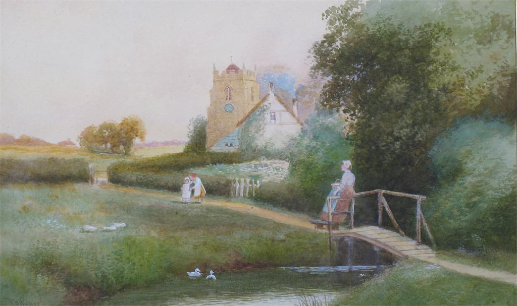 ROBERT HOLLANDS WALKER (fl.1892-1920): Figures in a village street