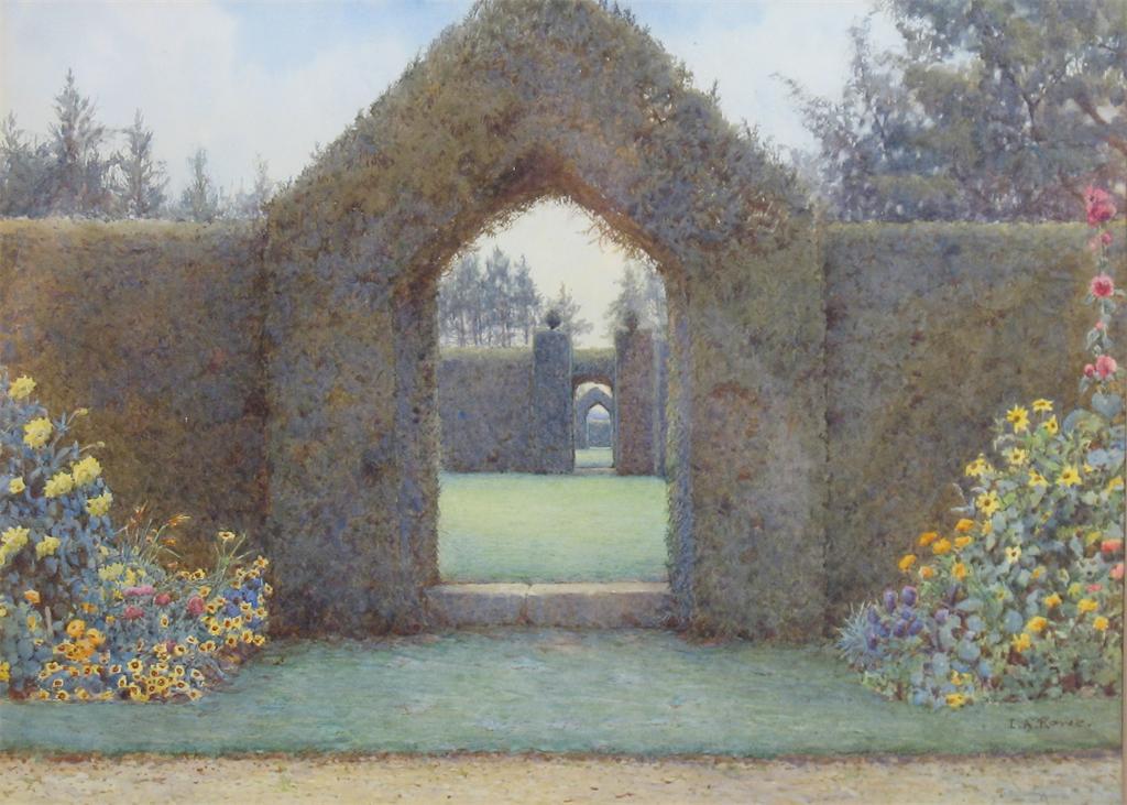 ERNEST ARTHUR ROWE (1863-1922): Yew hedges at Rous Lench