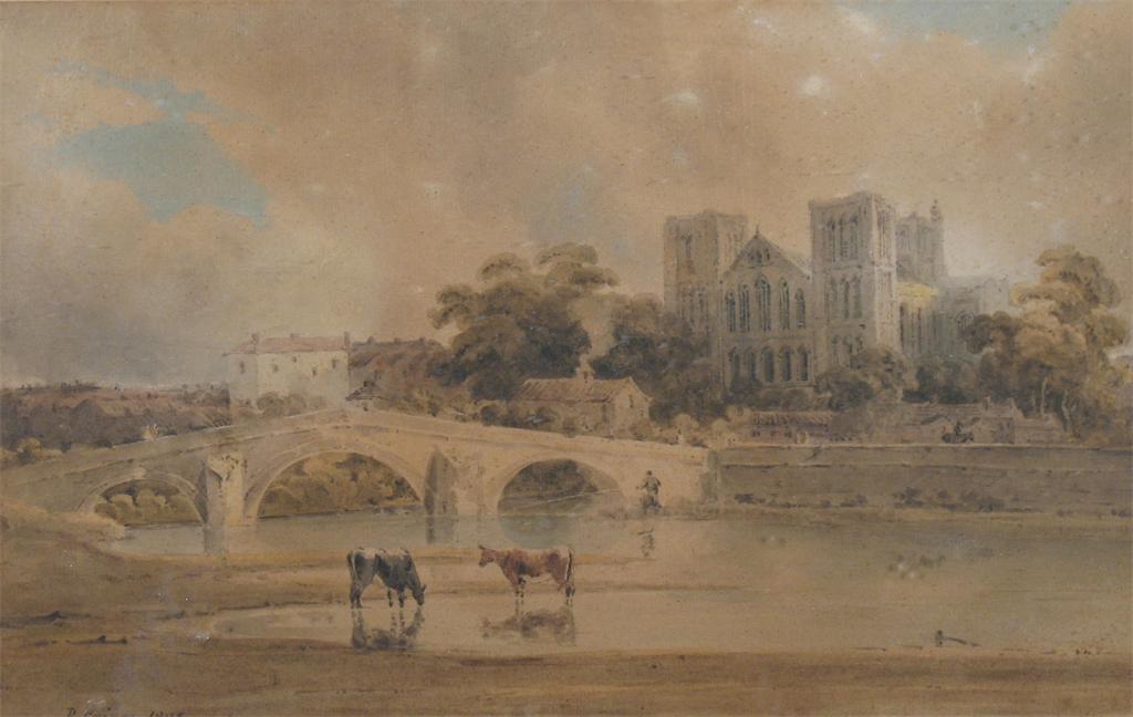 R. PRINCE ( ): View of Ripon Cathedral, signed and dated 1805, watercolour, 26 x 41cm (10.25 x 16.25in) ++ Very brown all over, otherwise good.