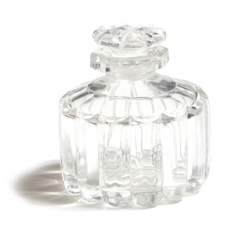 A cut glass inkwell, with a ribbed body and a mushroom stopper, first half 19th century, 8cm high.