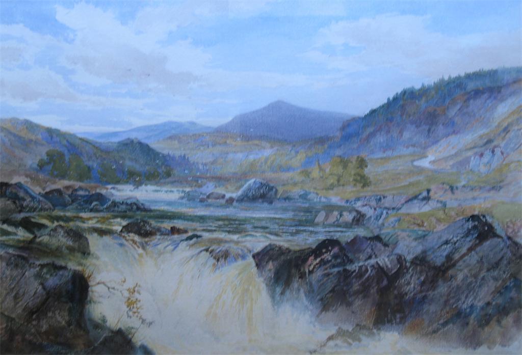 ALBERT STEVENS (exh.1880-1907): An extensive river landscape with waterfall, signed, watercolour, 51 x 73.5cm (20 x 29in) ++ Slight overall fading.