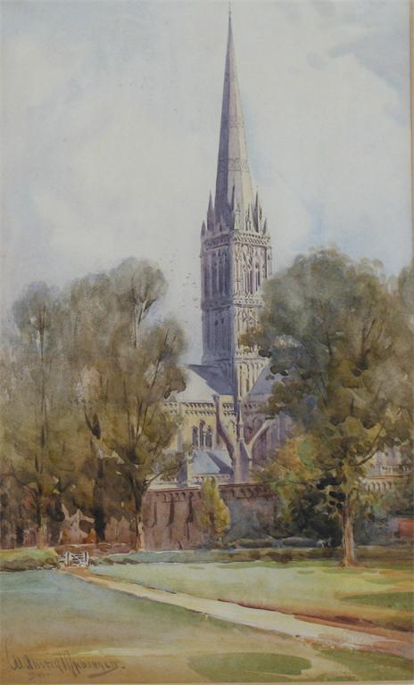 W. ALISTER MacDONALD (1861-1948): Salisbury Cathedral, signed and dated 1901, watercolour, 34.5 x 21cm (13.75 x 8.25in) ++ Good condition.