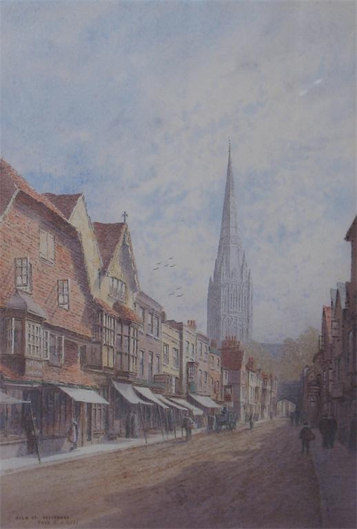 FREDERICK E.J. GOFF (1855-1931): High Street, Salisbury, signed and inscribed, watercolour, 25.2 x 20cm (10 x 8in)