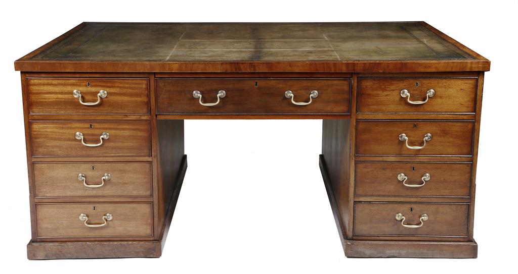 A George III style mahogany twin pedestal partner's desk