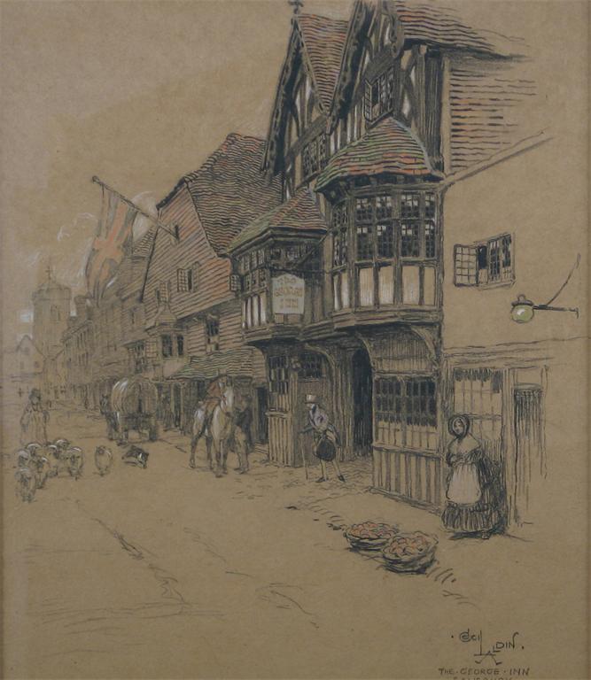 CECIL ALDIN (1870-1935): The George Inn, Salisbury, signed and inscribed, pastel, 39 x 33.5cm (15.25 x 13.25in)