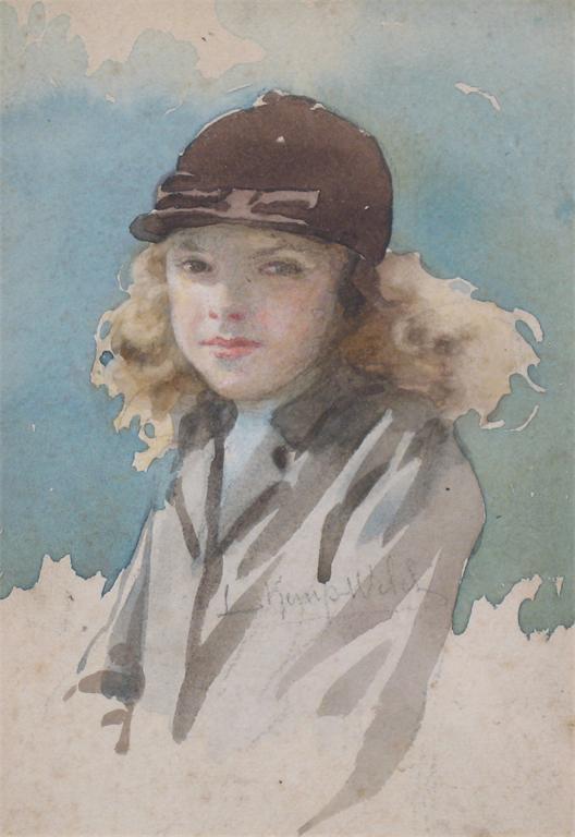 LUCY KEMP-WELCH (1869-1958): Portrait of a young girl in a riding hat, signed, watercolour, 23 x 16.5cm (9 x 6.5in) By repute, the sitter is the artist's niece. ++ Minor overall fading, the bottom third of the picture is unfinished.