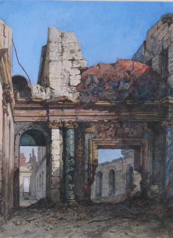 WILLIAM WYLD (1806-1889): The Ruins of the Palace, St Cloud, signed, pencil and watercolour, 33 x 25cm (13 x 9.75in) The Palace St Cloud was destroyed by bombardment during the Franco Prussian War of 1870 Provenance: Purchased by the vendor's father from P. and D. Colnaghi and Co. Ltd. for 2,250 ++ Good condition.