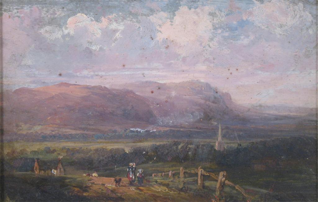 ENGLISH SCHOOL (mid 19th century): Figures on a path with mountains beyond