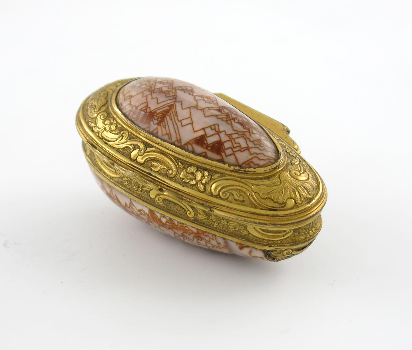 A George III gilt-metal mounted shell snuff box