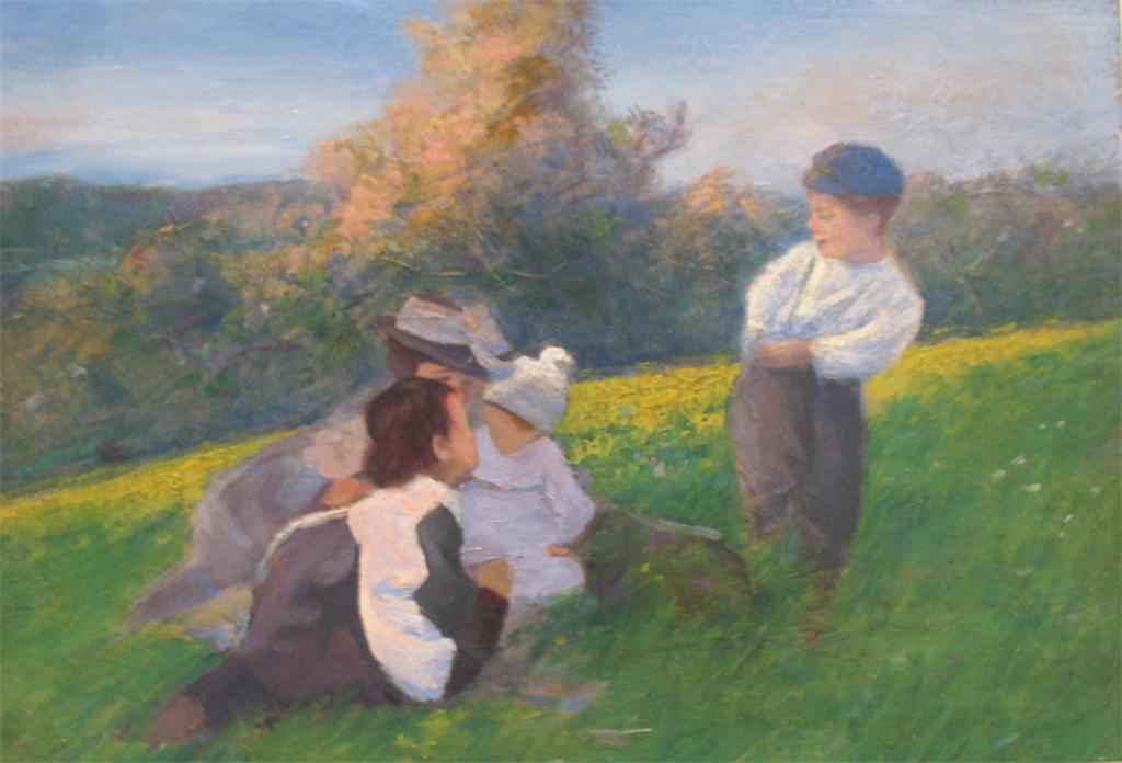 ATTRIBUTED TO GIDEON FIDLER (20th century): Four children on a hillside