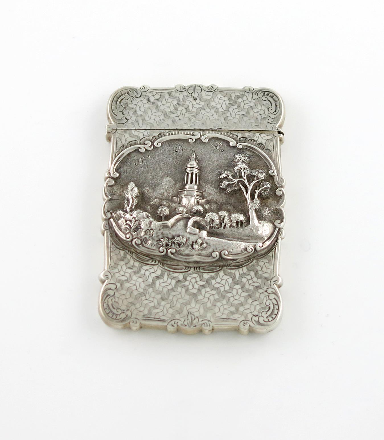 A Victorian silver 'castle-top' card case, Burns Monument, Alloway,