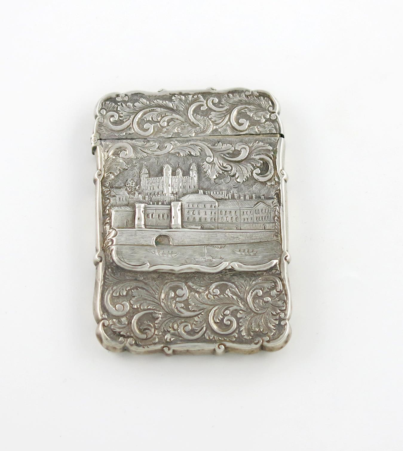 A Victorian silver 'castle-top' card case, The Tower of London,