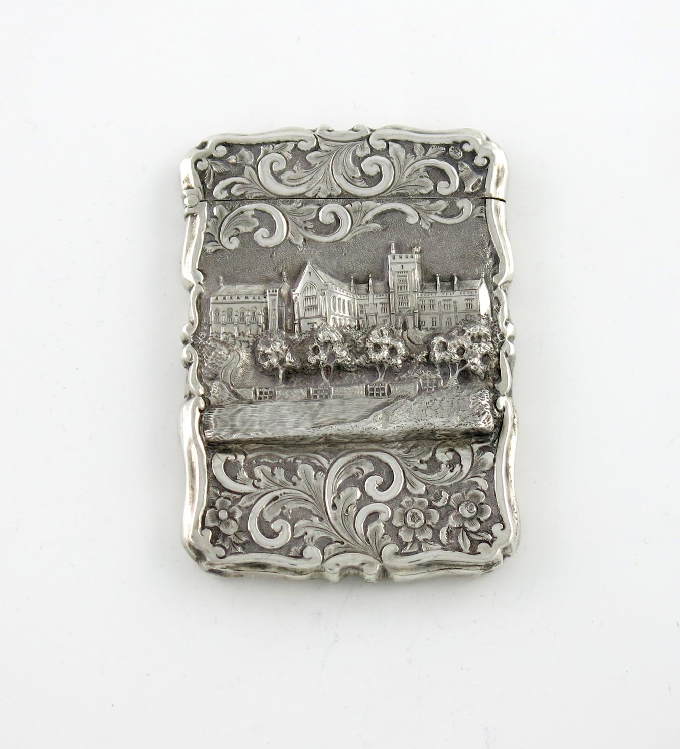 A Victorian silver 'castle-top' card case, Queen's College Cork,