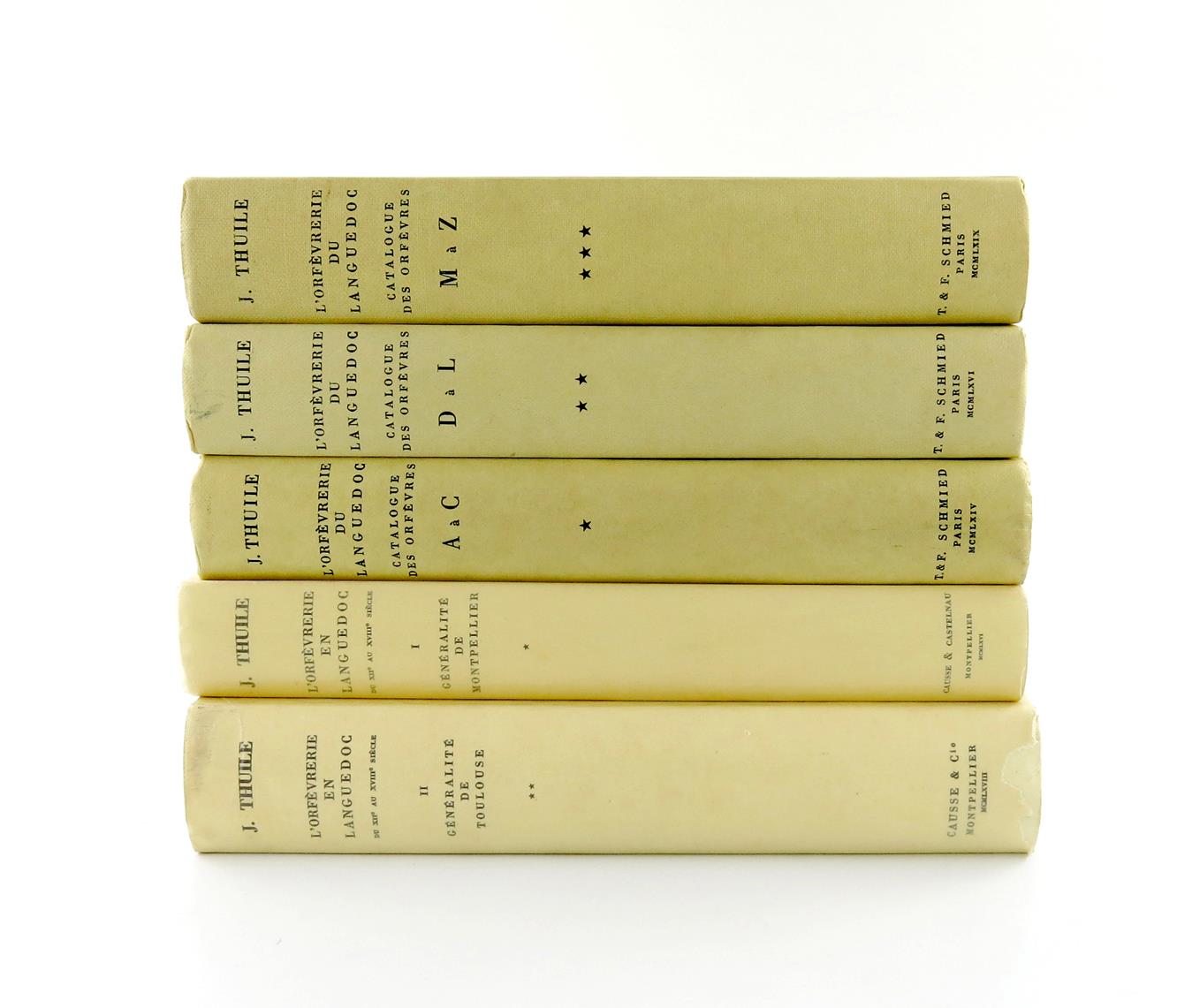 Thuile, J., L'Orfevrerie Du Languedoc, Generalites de Montpelier at de Toulouse, Theo and Florence Schmied, 1966, three Volumes, plus Thuile, J., L'Orfevrerie Du Languedoc, DU XIIme Au XVIIIme Siecle, Causse et Castelnau,1966, two volumes. (5)