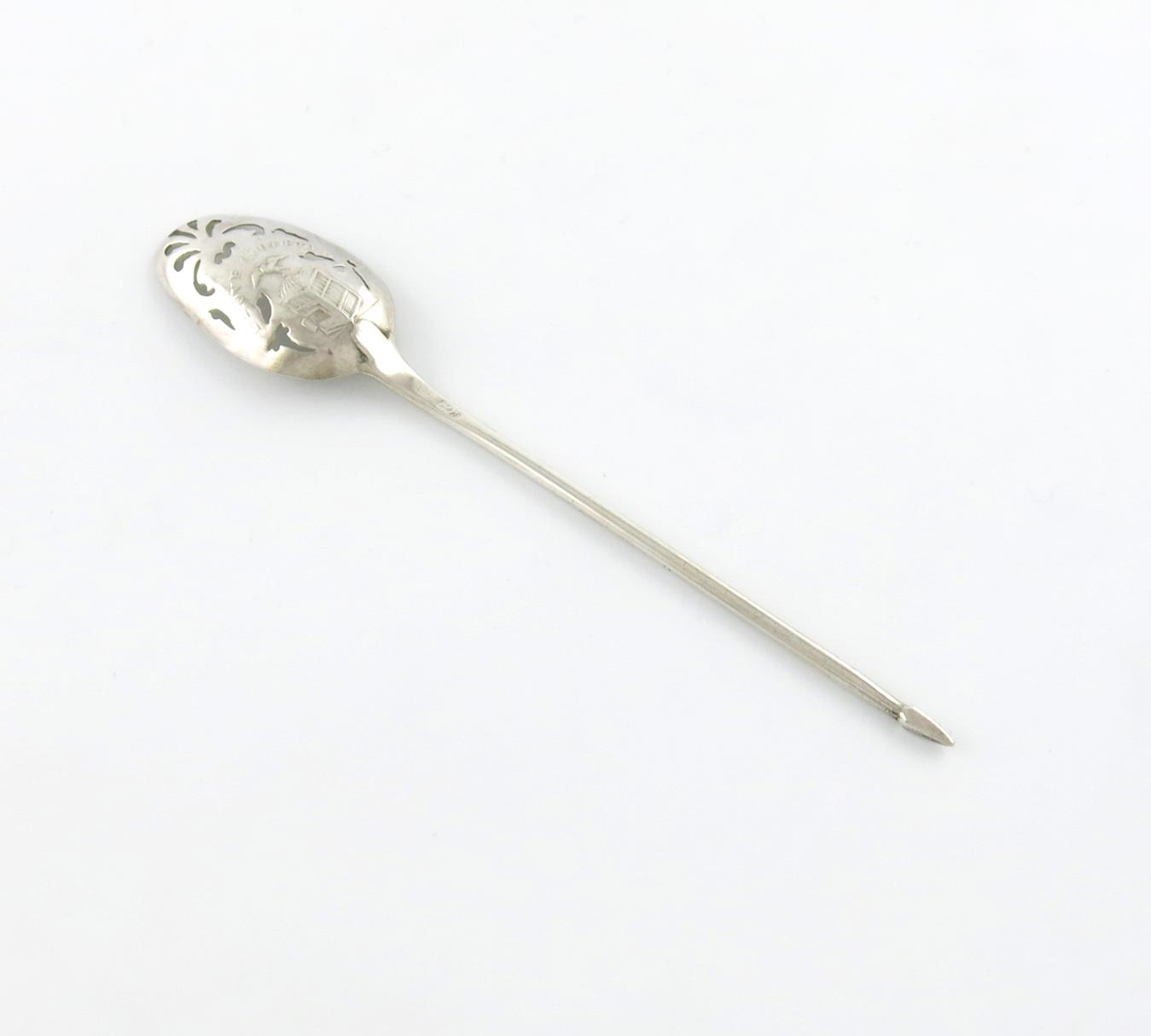 A rare George III silver picture back mote spoon, 'I LOVE LIBERTY',