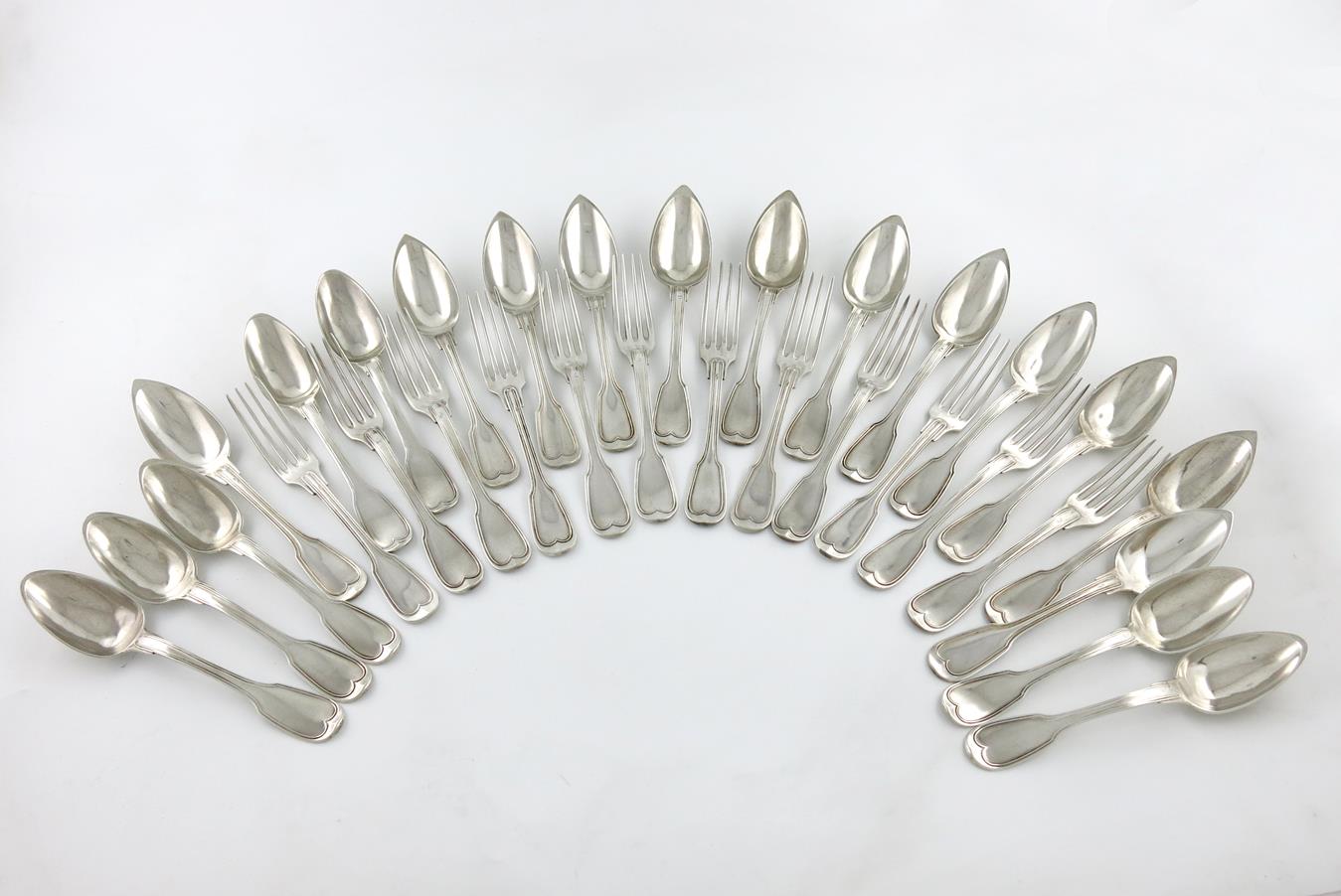 A collection of early 19th century French silver Fiddle and Thread pattern flatware