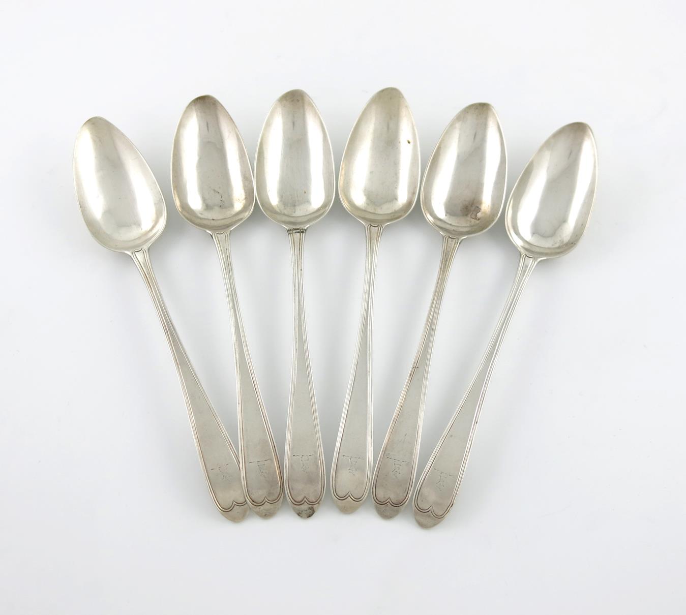 A set of six George III Irish silver Celtic Point and Thread pattern tablespoons,